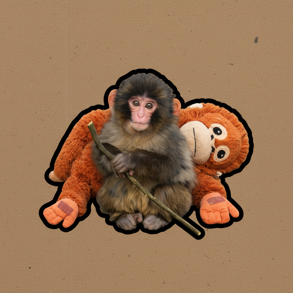But what makes Punch truly special is his best friend — a soft, well-loved plushie that never leaves his side. Day and night, through every adventure and quiet moment, they're inseparable.